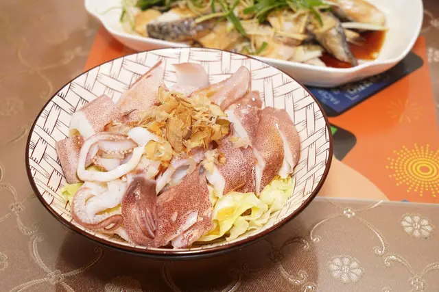 這也是新菜!這道菜是當天最讓我驚豔的菜色,澎湖冰捲好新鮮!口感脆彈,厚度有夠,咬起來居然會流汁!搭配柚子醋醬汁,清爽又解膩。
