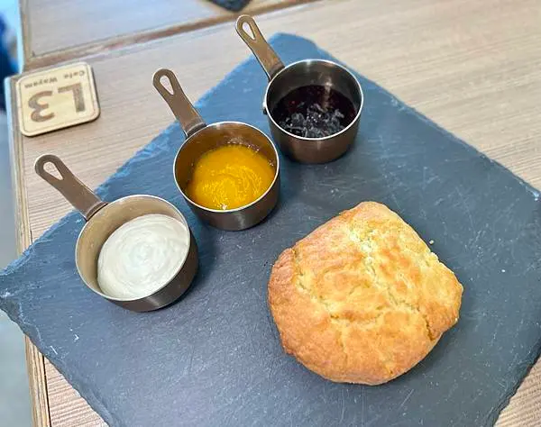 ▼司康派對(桑椹醬、芒果醬、鮮奶油)