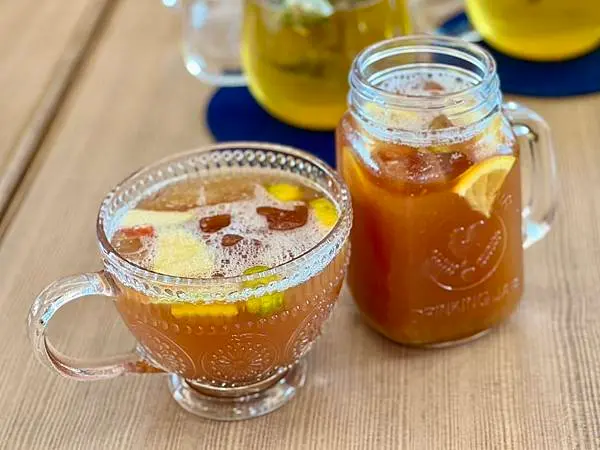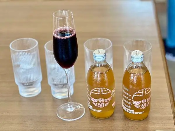 ▼康普茶(接骨木花蘋果茶)、紅酒