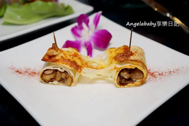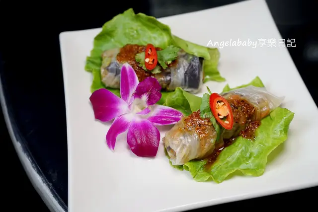 芙蓉春捲,豆乾/木耳/胡蘿蔔/豆腐包入越南卷中,搭配越南酸辣醬