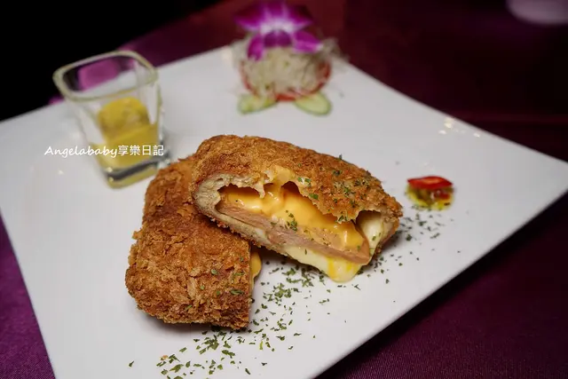 一份580.使用了三種起司搭配素火腿.以藍帶豬排的方式呈現
