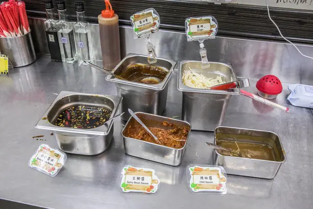 一旁是自助區,餐具自己拿,薑絲、豆瓣醬等佐料也都是無限自取