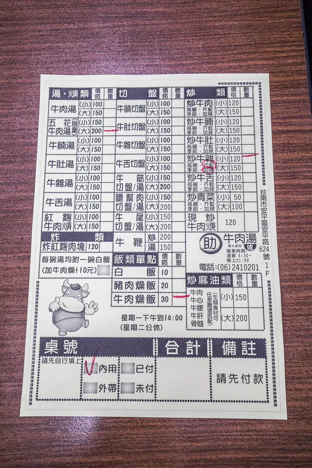 助仔牛肉湯的人氣雖比起文章略遜一籌,但生意也是很好,用餐時間也是客滿,但翻桌率快,就算排隊也不用等很久,牆壁上滿滿的簽名,其中也不乏政商名流、明星藝人,也是安平名店來著!
