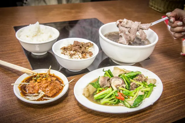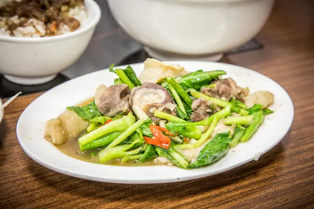 助仔牛肉湯的牛肉湯有大小碗的分別,只差50元而已,可以點大碗的肉多很多,我們還點了一盤芥蘭炒牛雜跟牛肉燥飯,出餐速度還蠻快的