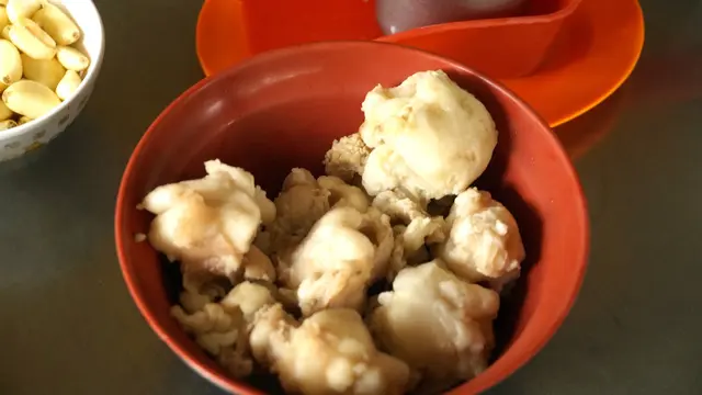 這裡除了豬小腿骨很少見,還有豬的膝蓋軟骨也很特殊。看起來是肥油但他是軟骨組織。QQ脆脆的口感相當好吃,這天我追加了兩份。搭配店家的辣椒醬更是對味。
