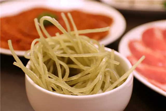 將紅薯粉整個燙到透光之後再拌入招牌麻辣湯汁即可品嚐食用