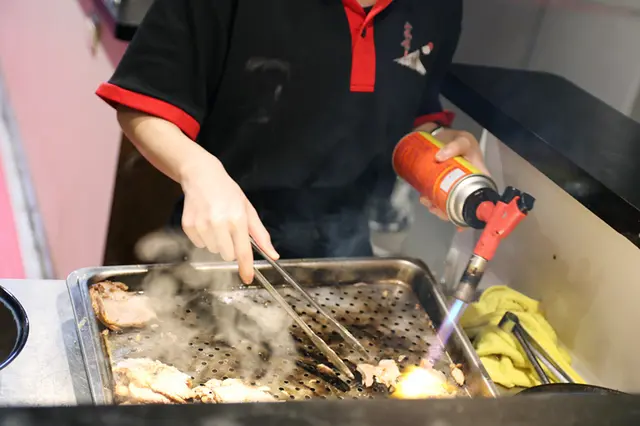再經由瓦斯槍的高溫烘烤不僅散發出一股豬肉的香氣