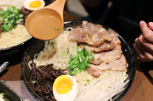 其實它的湯頭嚐起來略比豚骨要來的重鹹
