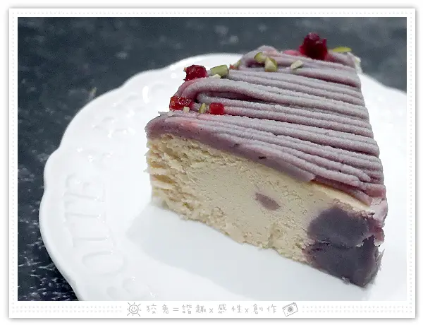 濃濃芋泥內外包夾乳酪蛋糕,整體口感和諧舒服,彼此一拍即合。