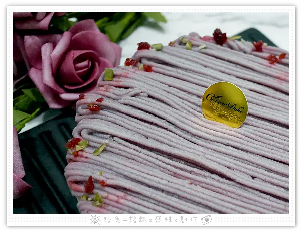 芋泥混入鮮奶、砂糖,質地綿柔細緻,然而這款蛋糕並非只做表面功夫!