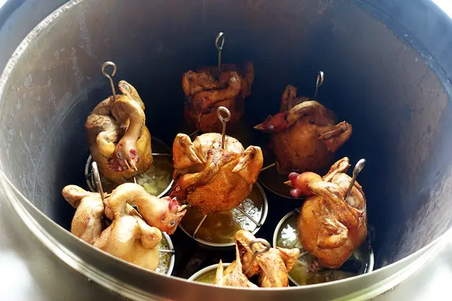 關之嶺餐館的磚窯雞採用的是傳統桶仔雞市場做法