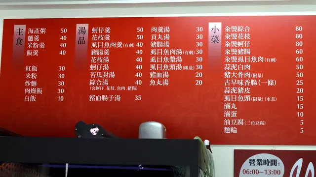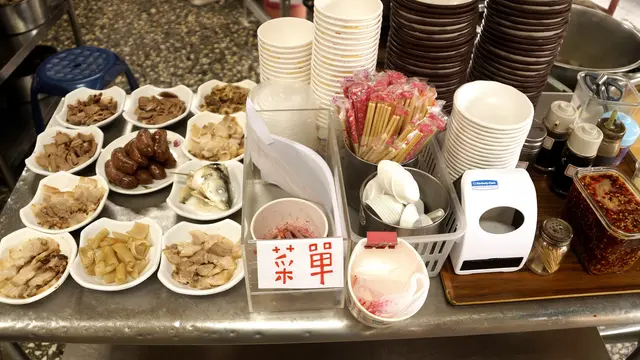 最近又經歷了一次翻修,環境感覺更明亮,清潔度也整體往上提升。工作區域與用餐區完整的分割了開來,可以看到老闆娘一家與員工專注工作的樣子。透明的櫥子裡面擺著小菜的食材。一旁的三個大鍋保溫著高湯與肉羹。