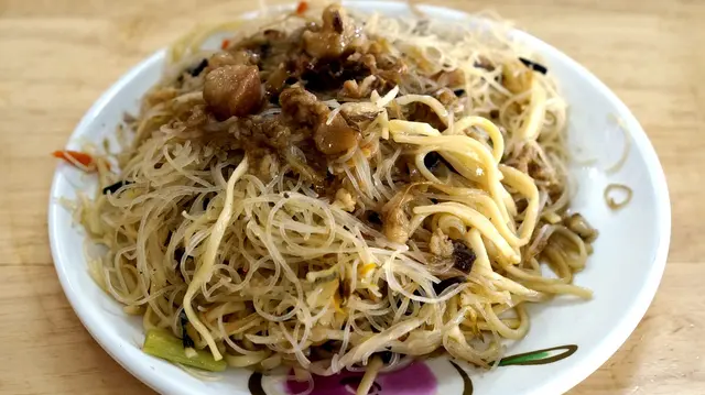 炒麵跟炒米粉都很入味,上桌前還會淋上肉燥讓麵條吃起來更香滑。如果想要一次品嚐兩個口感還可以跟店家注文說要米粉麵。