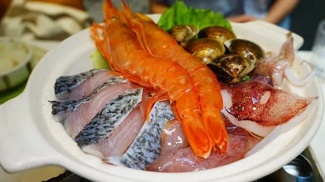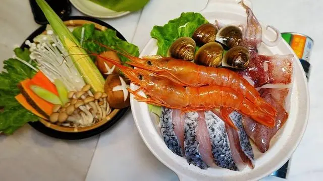 兩隻超大的阿根廷天使紅蝦加上鱸魚, 花枝 ,蛤蠣