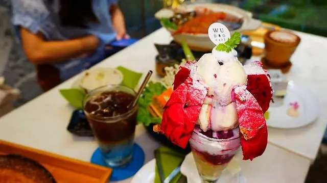 放在高腳杯中的冰淇淋甜點搭配上台灣在地的食材火龍果