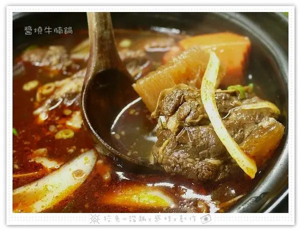 鍋裡有軟嫩不柴的大塊牛腩,紅白蘿蔔是配角。
