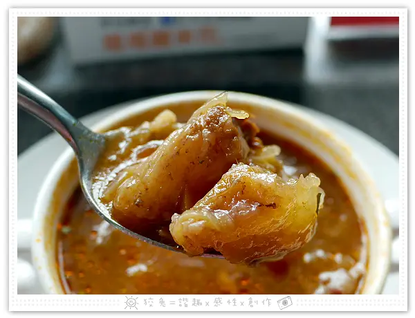 內含牛筋,比起肉塊較有嚼勁些,湯汁也是偏鹹重口味。