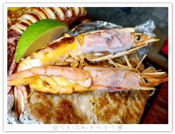 兩尾高貴的天使紅蝦!添加起司以焗烤方式呈現,相當特別。