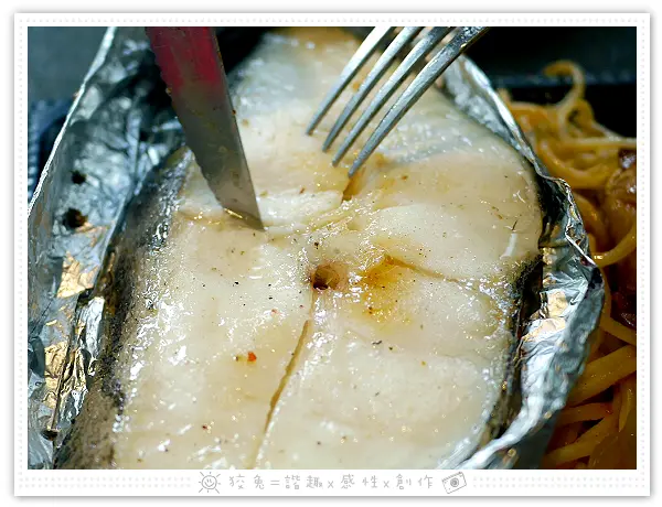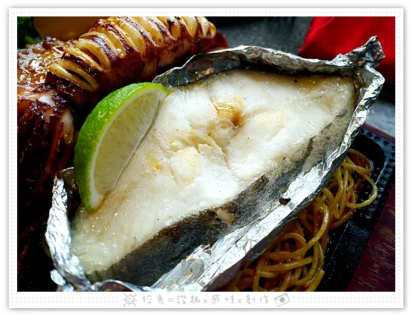 這塊鱈魚的體積也不遜色!直接用鋁箔紙當作容器,漂亮上桌!