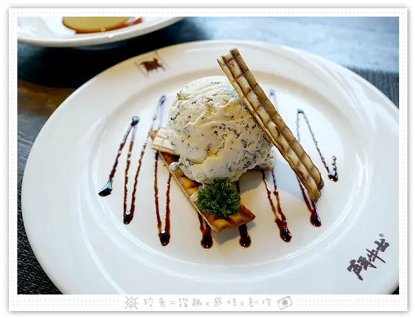 冰淇淋真的很大一球喲!又香又濃佐以三片脆口的法式薄餅。