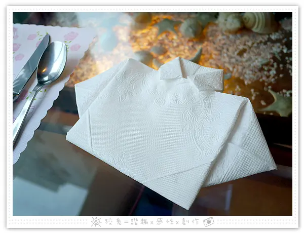 店家願意花時間摺餐巾紙就很用心了,居然還不只一種摺法哩!