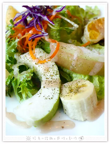 嚐了特調的油醋醬汁,突然眼睛一亮,味蕾遭受刺激,連帶提振精神。