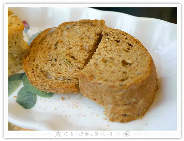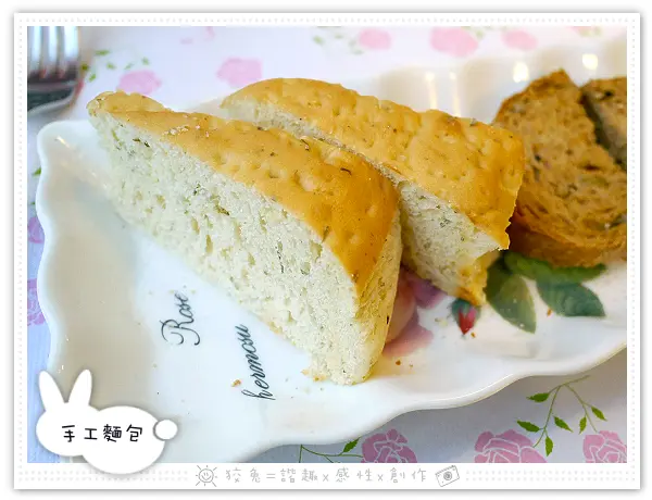 隨餐附上兩款香草麵包,一人各一塊,首先是鬆軟的迷迭香麵包。