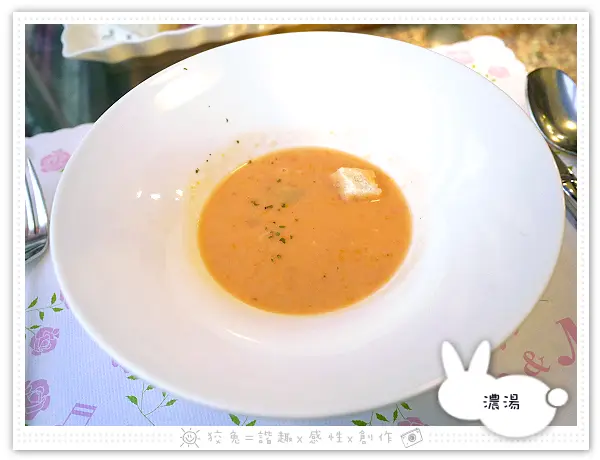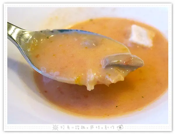 湯品隨機推出,這天端出時蔬百匯濃湯,看顏色揣測有加入南瓜。