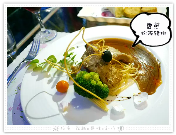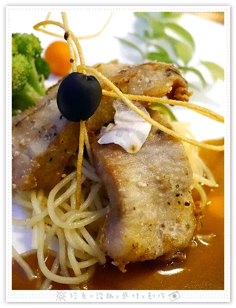 另一道排餐是松阪豬,狡兔平常就鍾愛"黃金六兩肉"的獨特咬勁!