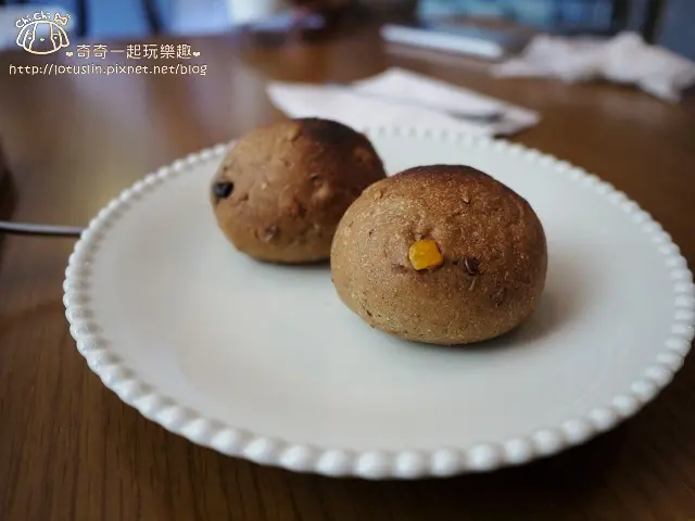 麵包則有兩種,小圓麵包很好吃,裏頭有柑橘,