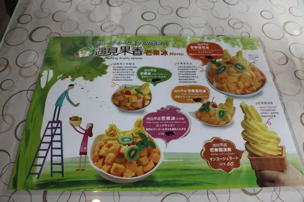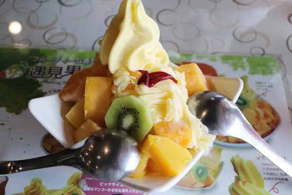 遇見果香所使用的芒果是老闆精心挑選專門外銷國外的玉井芒果,不但有吉園圃認證,還符合日本嚴格的海關規定及歐盟農藥規定,讓消費者可以吃得安心。不過,因為今年颱風過多,玉井的芒果也欠收,從9月開始也會使用屏東的四季芒果。