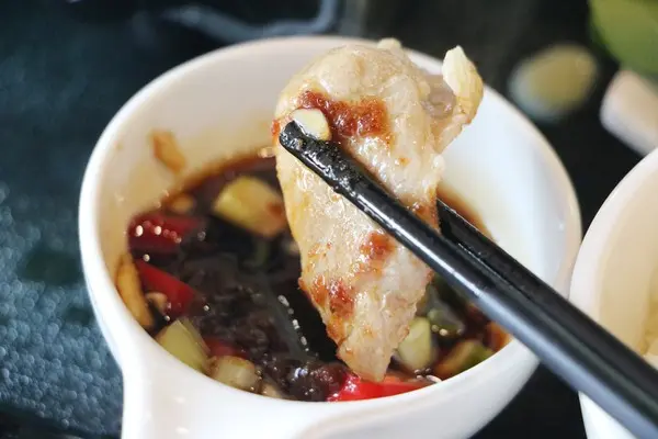 老闆說沾醬的醬汁是自已調的,特別加上水果與蜂蜜,真的是顛覆我的想法,醬汁也可以加蜂蜜,這樣沾著吃口感略甜又不膩唷。