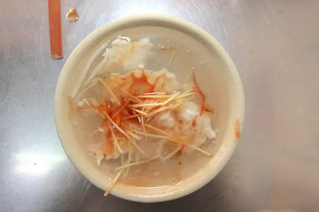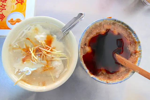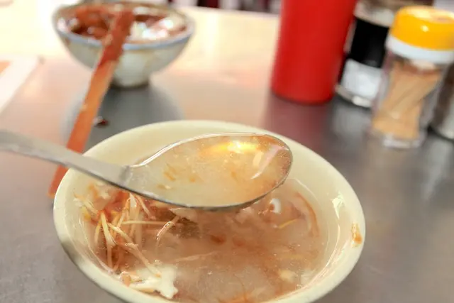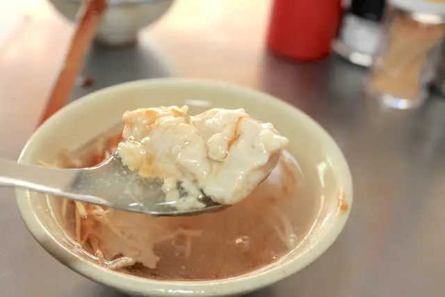 魚羹的湯頭偏清澈勾芡濃度適中, 裡面的魚羹很大塊,上面鋪上薑絲淋上烏醋題味。
