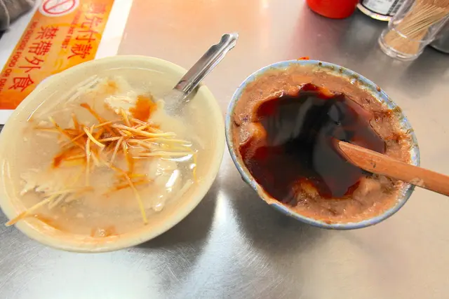 碗粿是深褐色與富盛號碗粿顏色相近,店家有介紹因為使用肉燥與醬油關係,店家還附上復古的竹叉供使用,很有意境但是我使用起來不習慣。
