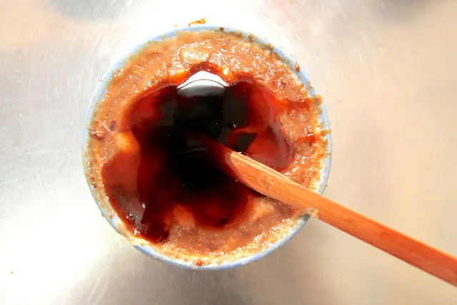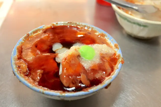 上面淋上的醬油膏較濃稠顏色也偏深。