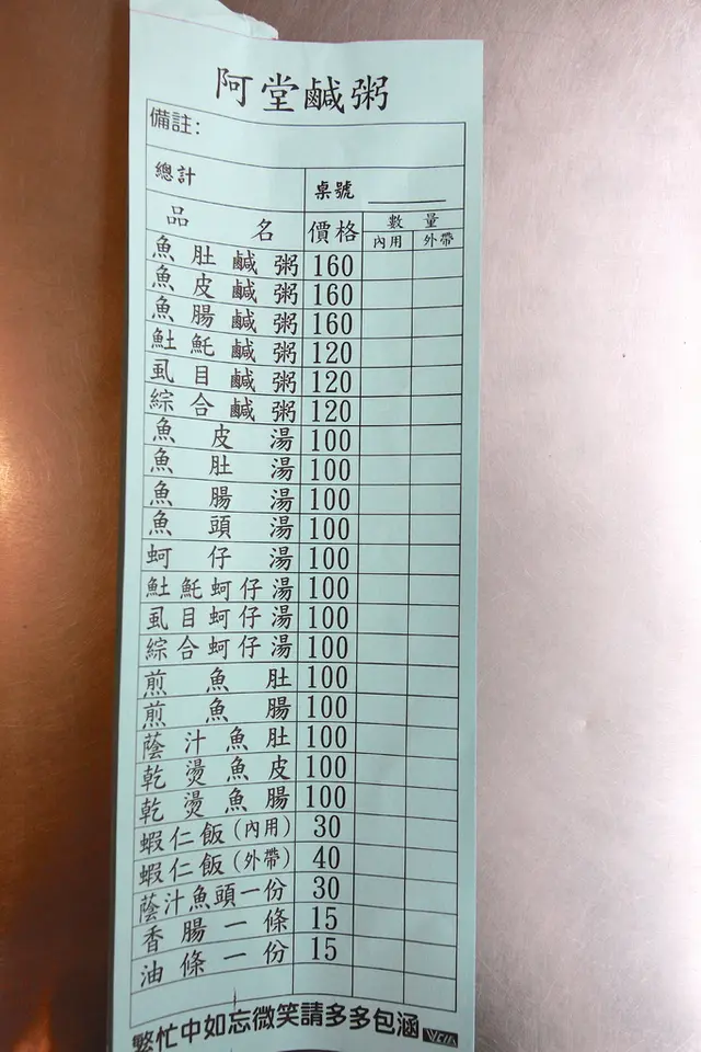 小高獨自來用餐就點最貴的魚肚鹹粥160元,小高今天結完帳確實店家是沒有給我發票,原因如何我真的不得而知也不想亂猜。