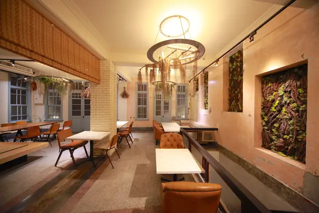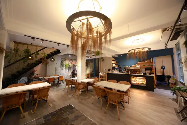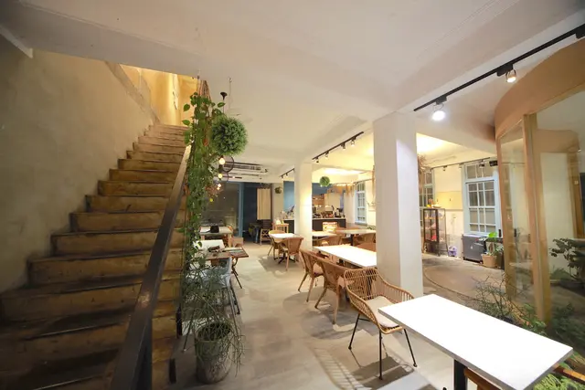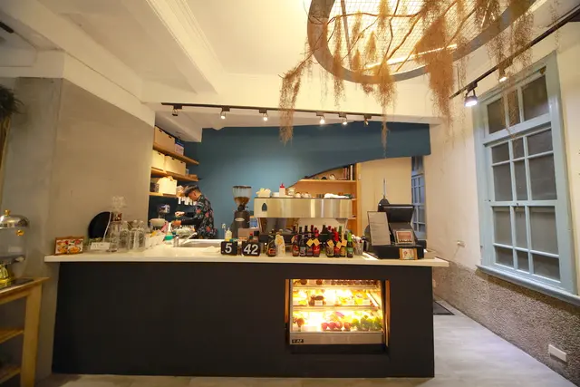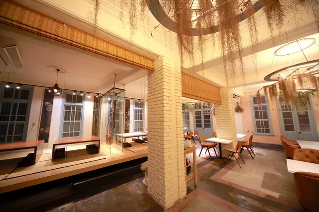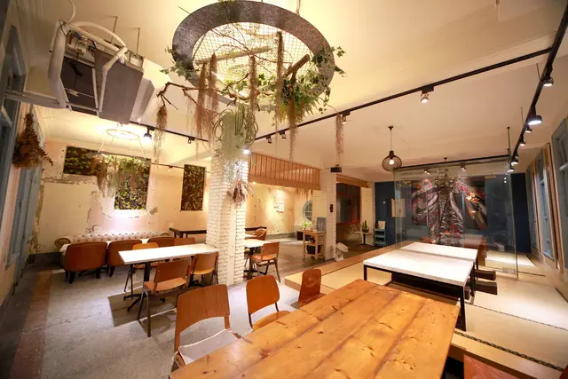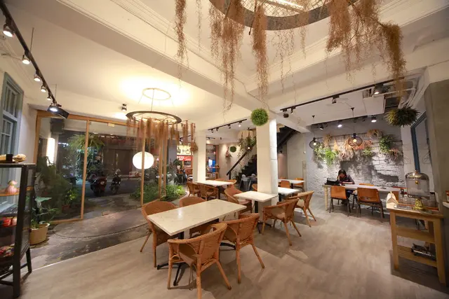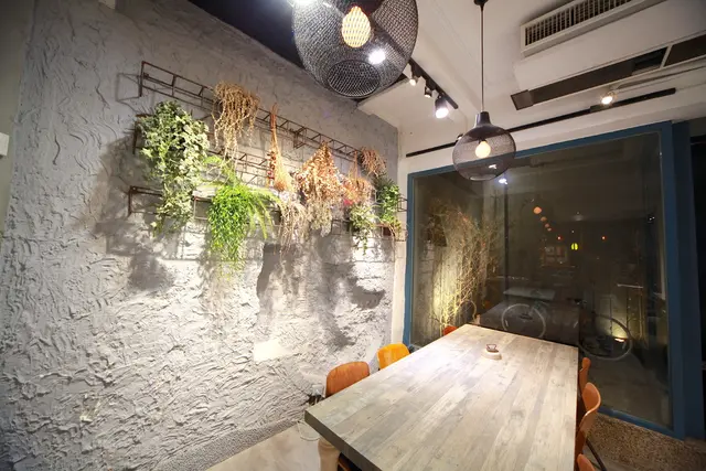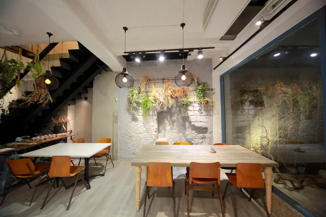 一樓用餐空間很寬敞採光也非常好,座位區座位間距擺置得宜還有共桌座位,柔和燈光與乾燥花充滿文青氣息。