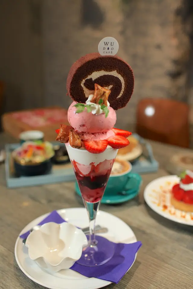 這草莓聖代有新鮮草莓、草莓冰淇淋、蛋糕、奶油及QQ凍等等,草莓冰淇淋很濃郁爽口好吃,巧克力蛋糕很綿密又鬆軟好吃,裡面QQ凍很Q彈甜度適中好吃,當季草莓酸甜超好吃。