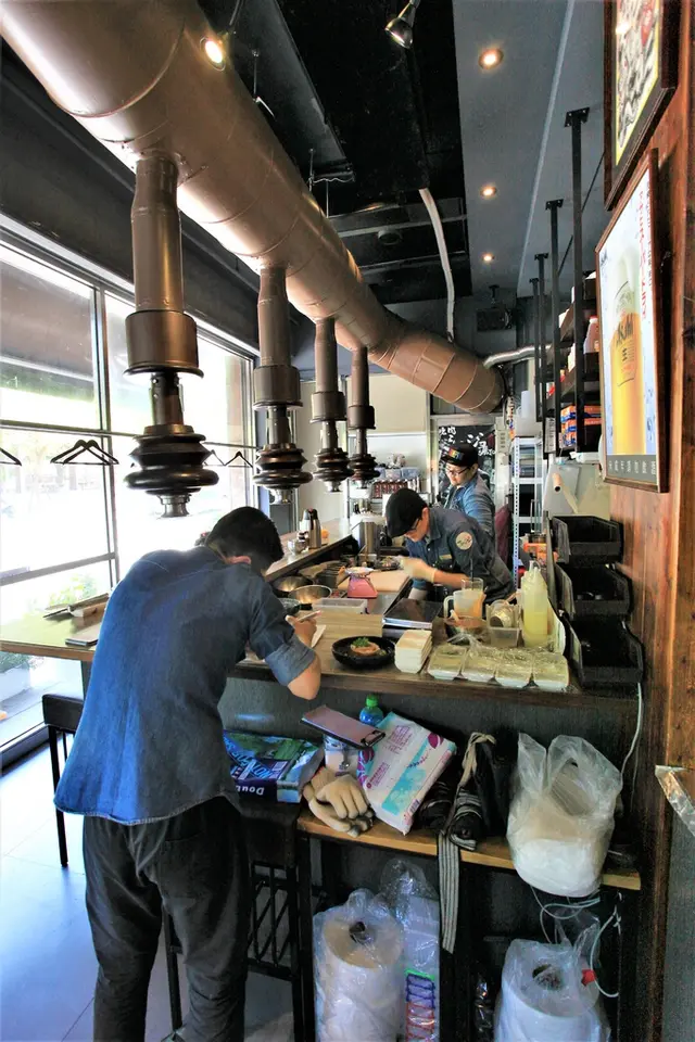 店內用餐空間不算大所以座位不算多,店裡面的大型的抽風管環繞呼應現在流行的工業風。