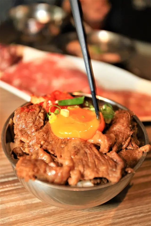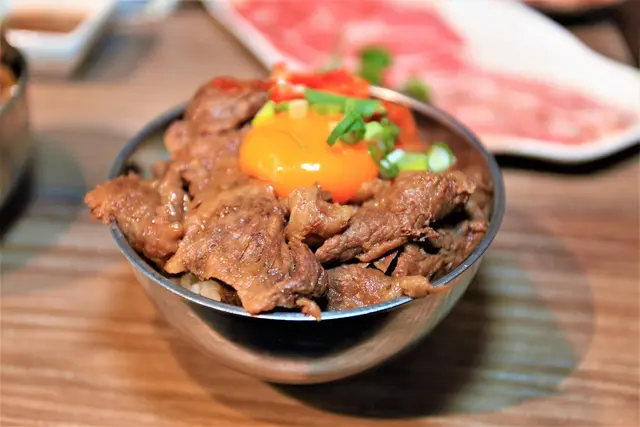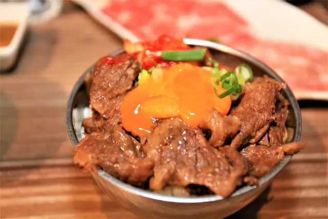 牛丼牛肉肉質厚實且鬆軟加入蛋黃滑順超好吃。