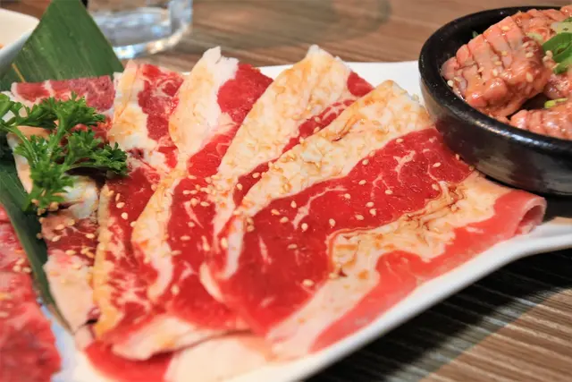 牛五花後腹肉口感入味肉質軟嫩且有油脂的香氣非常好吃。