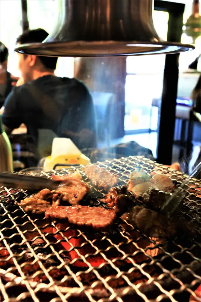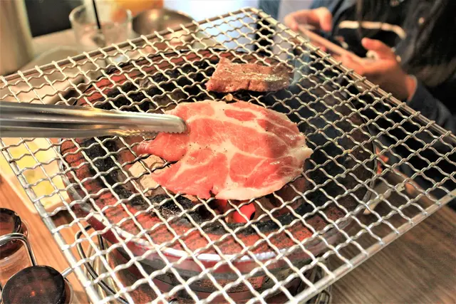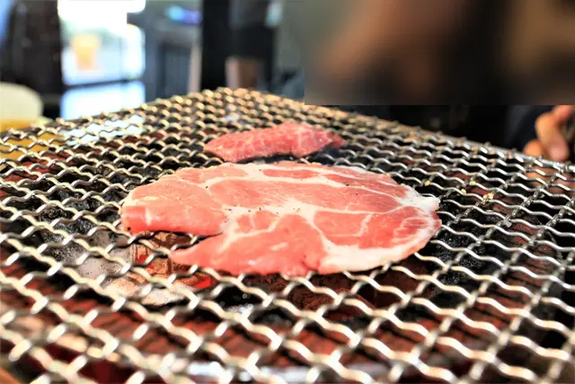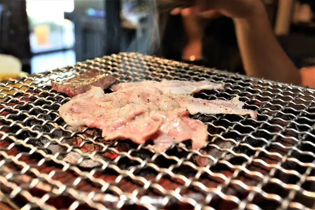 焼肉ショジョ是使用的較厚的烤肉網來烤肉。