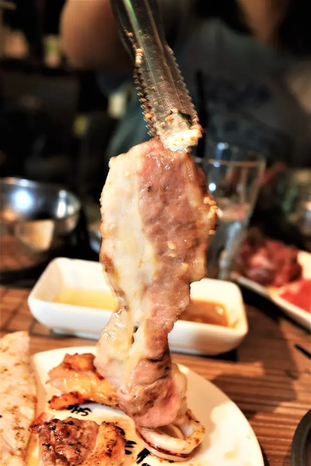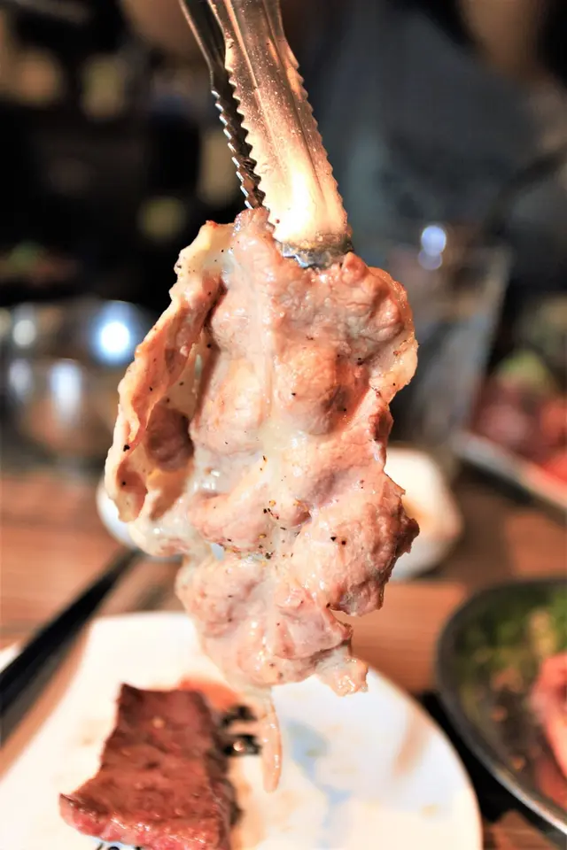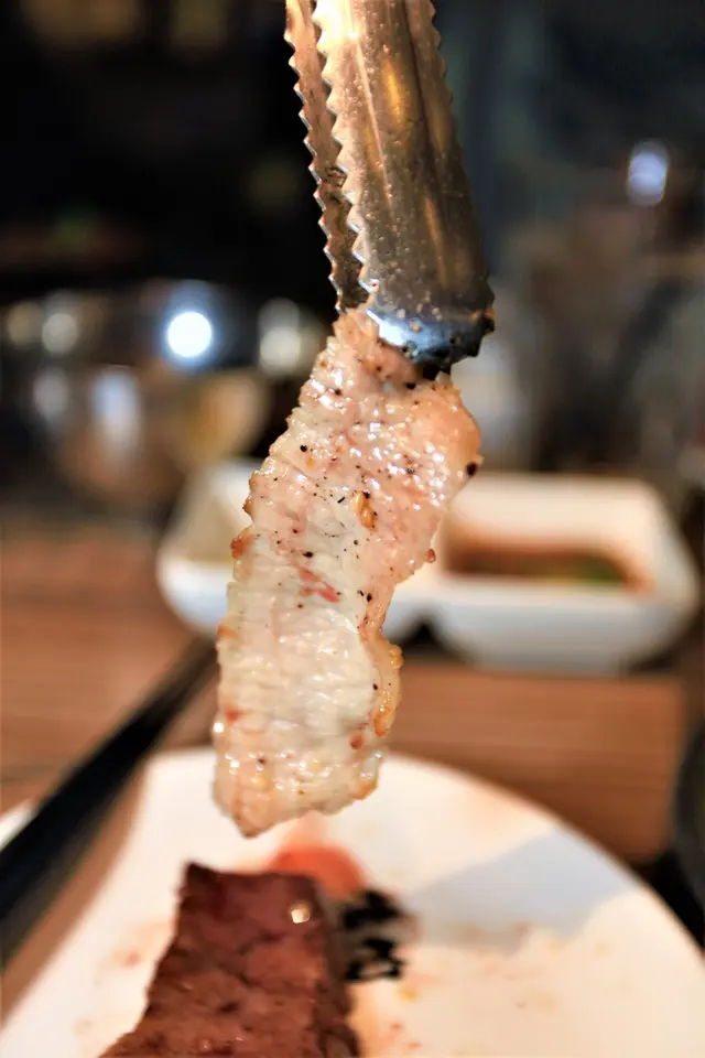 特選牛五花烤到外觀呈現粉潤色就可以開始品嚐,整體口感肉質入味鮮甜又軟嫩非常好吃。