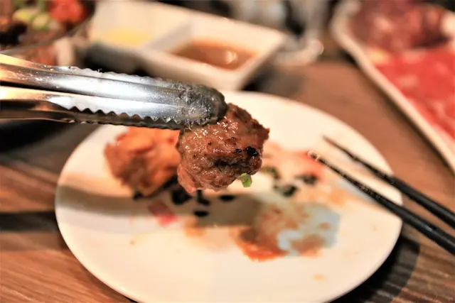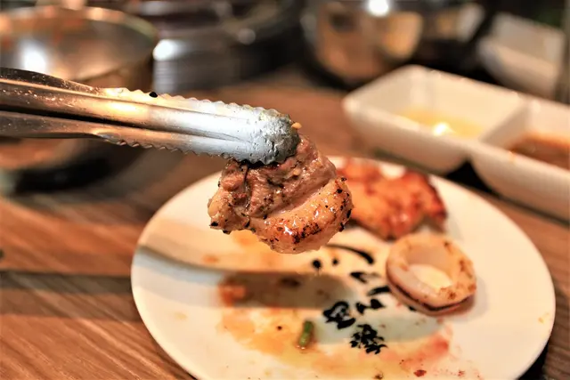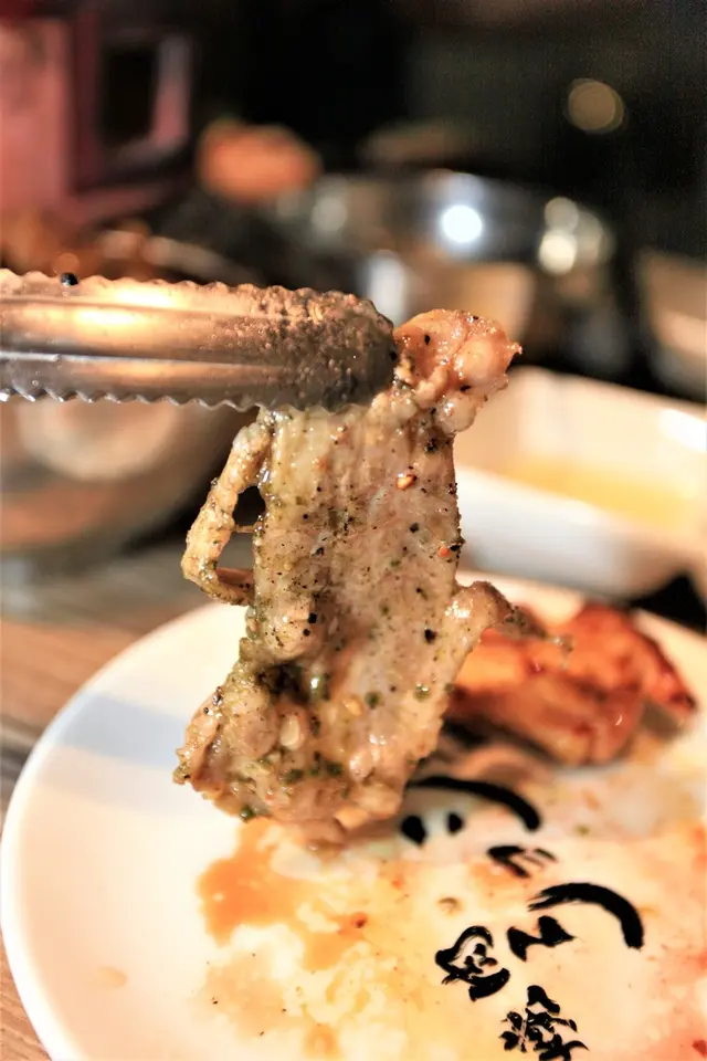 這樣的炭火相當均勻肉片很快熟且一翻面再烤即可,店家的肉片基本上皆有是先醃漬過所以完全不用沾醬來烤。