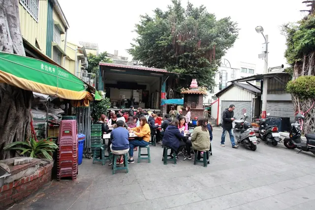 後方的廟口相當寬敞也坐滿了人潮。