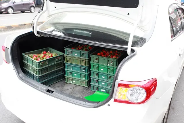剛好看到店家用轎車載草莓來。