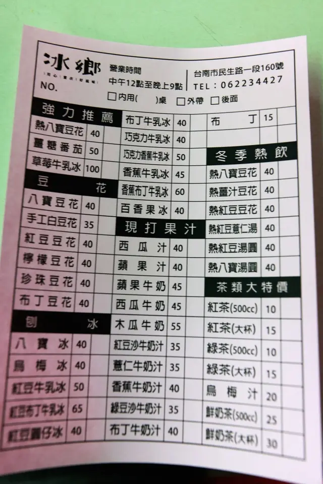 Menu相當簡單價錢合理,主要有手工豆花、各式冰品與新鮮果汁等,當然今天小高眼睛只看到草莓牛乳冰100元。