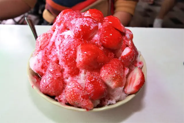 刨冰、新鮮草莓與店家自己打的草莓醬視覺感非常享受。