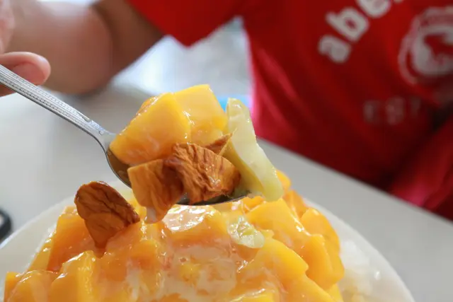芒果冰搭上情人果與芒果乾確實超級好吃。