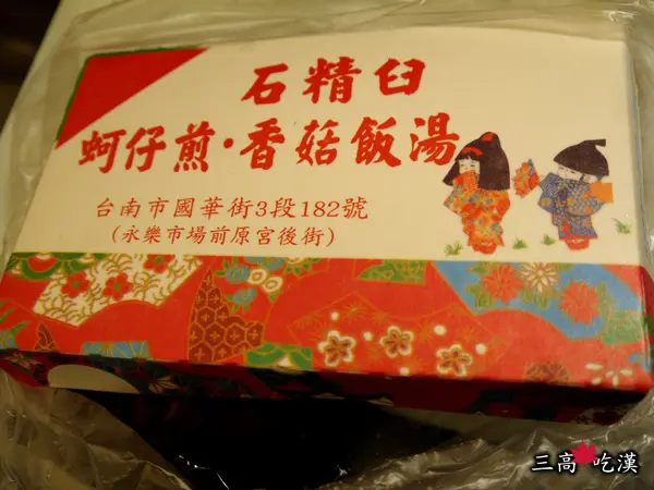 沒多遠旁的石精臼蚵仔煎,我也過去買了一個外帶,是一個老阿伯在煎,